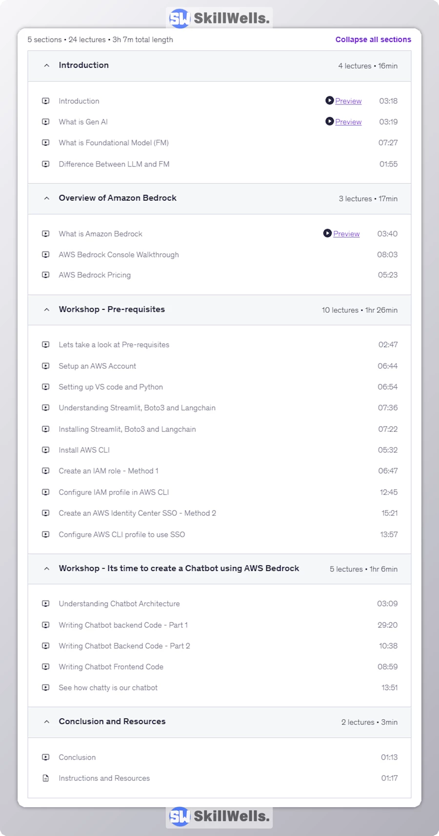 One of the strong areas of this workshop is based on practical learning. You will set up AWS Identity and Access Management (IAM), configure Single Sign-On (SSO) using the AWS CLI, and learn how all this fits together in a real-world scenario. The labs are designed in a sequential way so that you are able to not only learn the theory but also have a practical experience with the real tools and processes. At the conclusion of the AWS Bedrock Workshop (Build a Gen AI Chatbot) – Level 100 Course, you will be able to run a prototype of a chatbot on AWS Bedrock.