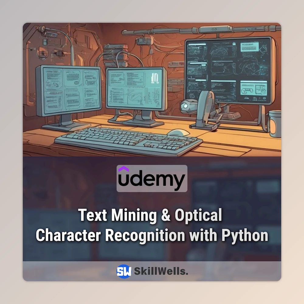 The Text Mining & Optical Character Recognition with Python Course helps you discover Natural Language Processing (NLP) and computer vision by providing detailed coverage in the Python programming language. You will learn the basics of text mining and frameworks such as tokenization, removal of stopwords, stemming, lemmatization, TF-IDF, topic modeling, sentiment analysis, text summarization, entity recognition, and spam or plagiarism detection. You will also discover the fundamentals of Optical Character Recognition (OCR), where the familiar libraries (EasyOCR, Tesseract, and Pytesseract) will be used to extract text from images and documents.
