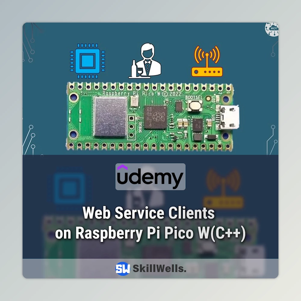 The Web Service Clients on Raspberry Pi Pico W(C++) Course demonstrates how to realize the full capabilities of the Raspberry Pi Pico W by creating and consuming RESTful web services with C++. You will learn to use them as service clients and servers, creating and using two of the most powerful HTTP libraries, LWIP HTTP App and coreHTTP, over the course of six hours of video lessons delivered step by step. By the end of it, you will be at ease creating interrelated applications that will connect your Pico W to the rest of the web.